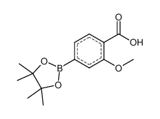 Product Name: 2-methoxy-4-(tetramethyl-1,3,2-dioxaborolan-2-yl)benzoic acid Order number: 209573 CAS: 936728-23-3 Purity: 96% Appearance: n.a. MF: C14H19BO5 MW: 278.109 MP: n.a. oC Description: Boronic acids are widely used in organic chemistry, pharmaceuticals, materials science, and sensor technology. |