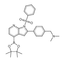 Product Name: Benzenemethanamine, N,N-dimethyl-4-[1-(phenylsulfonyl)-4-(4,4,5,5-tetramethyl-1,3,2-dioxaborolan-2-yl)-1H-pyrrolo[2,3-b]pyridin-2-yl]- Order number: 209577 CAS: 942919-72-4 Purity: 98% Appearance: n.a. MF: C28H32BN3O4S MW: 517.447 MP: n.a. oC Description: Boronic acids are widely used in organic chemistry, pharmaceuticals, materials science, and sensor technology. |