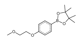 Product Name: 2-(4-(2-methoxyethoxy)phenyl)-4,4,5,5-tetramethyl-1,3,2-dioxaborolane Order number: 209654 CAS: 959972-40-8 Purity: 96% Appearance: n.a. MF: C15H23BO4 MW: 278.152 MP: n.a. oC Description: Boronic acids are widely used in organic chemistry, pharmaceuticals, materials science, and sensor technology. |