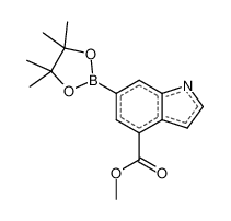 Product Name: methyl 6-(4,4,5,5-tetramethyl-1,3,2-dioxaborolan-2-yl)-1H-indole-4-carboxylate Order number: 209657 CAS: 2304635-05-8 Purity: 98% Appearance: n.a. MF: C16H20BNO4 MW: 301.145 MP: n.a. oC Description: Boronic acids are widely used in organic chemistry, pharmaceuticals, materials science, and sensor technology. |