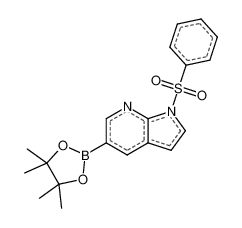 Product Name: 1-(phenylsulfonyl)-5-(4,4,5,5-tetramethyl-1,3,2-dioxaborolan-2-yl)-1H-pyrrolo[2,3-b]pyridine Order number: 209670 CAS: 2058052-40-5 Purity: 98% Appearance: n.a. MF: C19H21BN2O4S MW: 384.257 MP: n.a. oC Description: Boronic acids are widely used in organic chemistry, pharmaceuticals, materials science, and sensor technology. |