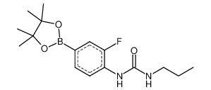 Product Name: 1-[2-fluoro-4-(tetramethyl-1,3,2-dioxaborolan-2-yl)phenyl]-3-propylurea Order number: 209737 CAS: 2246894-51-7 Purity: 95% Appearance: n.a. MF: C16H24BFN2O3 MW: 322.183 MP: n.a. oC Description: Boronic acids are widely used in organic chemistry, pharmaceuticals, materials science, and sensor technology. |