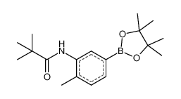 Product Name: 2,2-dimethyl-N-[2-methyl-5-(tetramethyl-1,3,2-dioxaborolan-2-yl)phenyl]propanamide Order number: 209742 CAS: 2246741-86-4 Purity: 97% Appearance: n.a. MF: C18H28BNO3 MW: 317.231 MP: n.a. oC Description: Boronic acids are widely used in organic chemistry, pharmaceuticals, materials science, and sensor technology. |