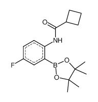 Product Name: N-[4-fluoro-2-(tetramethyl-1,3,2-dioxaborolan-2-yl)phenyl]cyclobutanecarboxamide Order number: 209745 CAS: 2246746-25-6 Purity: 95% Appearance: n.a. MF: C17H23BFNO3 MW: 319.179 MP: n.a. oC Description: Boronic acids are widely used in organic chemistry, pharmaceuticals, materials science, and sensor technology. |