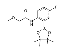 Product Name: N-[4-fluoro-2-(tetramethyl-1,3,2-dioxaborolan-2-yl)phenyl]-2-methoxyacetamide Order number: 209746 CAS: 2246895-78-1 Purity: 95% Appearance: n.a. MF: C15H21BFNO4 MW: 309.141 MP: n.a. oC Description: Boronic acids are widely used in organic chemistry, pharmaceuticals, materials science, and sensor technology. |