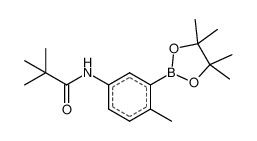 Product Name: 2,2-dimethyl-N-[4-methyl-3-(tetramethyl-1,3,2-dioxaborolan-2-yl)phenyl]propanamide Order number: 209773 CAS: 2246631-55-8 Purity: 97% Appearance: n.a. MF: C18H28BNO3 MW: 317.231 MP: n.a. oC Description: Boronic acids are widely used in organic chemistry, pharmaceuticals, materials science, and sensor technology. |