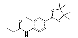 Product Name: N-[2-methyl-4-(tetramethyl-1,3,2-dioxaborolan-2-yl)phenyl]propanamide Order number: 209776 CAS: 2246585-68-0 Purity: 95% Appearance: n.a. MF: C16H24BNO3 MW: 289.178 MP: n.a. oC Description: Boronic acids are widely used in organic chemistry, pharmaceuticals, materials science, and sensor technology. |