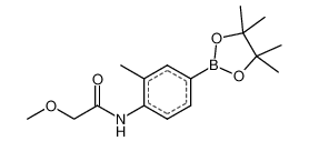 Product Name: 2-methoxy-N-[2-methyl-4-(tetramethyl-1,3,2-dioxaborolan-2-yl)phenyl]acetamide Order number: 209778 CAS: 2246691-80-3 Purity: 95% Appearance: n.a. MF: C16H24BNO4 MW: 305.177 MP: n.a. oC Description: Boronic acids are widely used in organic chemistry, pharmaceuticals, materials science, and sensor technology. |