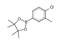 Product Name: 1,3,2-Dioxaborolane, 2-(4-chloro-3-methylphenyl)-4,4,5,5-tetramethyl- Order number: 209797 CAS: 445303-11-7 Purity: >95% Appearance: n.a. MF: C13H18BClO2 MW: 252.545 MP: n.a. oC Description: Boronic acids are widely used in organic chemistry, pharmaceuticals, materials science, and sensor technology. |