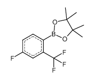 Product Name: 2-[4-fluoro-2-(trifluoromethyl)phenyl]-4,4,5,5-tetramethyl-1,3,2-dioxaborolane Order number: 209807 CAS: 1416723-10-8 Purity: >95% Appearance: n.a. MF: C13H15BF4O2 MW: 290.062 MP: n.a. oC Description: Boronic acids are widely used in organic chemistry, pharmaceuticals, materials science, and sensor technology. |