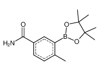 Product Name: 4-methyl-3-(4,4,5,5-tetramethyl-1,3,2-dioxaborolan-2-yl)benzamide Order number: 209886 CAS: 882679-88-1 Purity: 97% Appearance: n.a. MF: C14H20BNO3 MW: 261.125 MP: n.a. oC Description: Boronic acids are widely used in organic chemistry, pharmaceuticals, materials science, and sensor technology. |