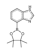 Product Name: 4-(tetramethyl-1,3,2-dioxaborolan-2-yl)-1,3-benzothiazole Order number: 209890 CAS: 1352796-64-5 Purity: 95% Appearance: n.a. MF: C13H16BNO2S MW: 261.148 MP: n.a. oC Description: Boronic acids are widely used in organic chemistry, pharmaceuticals, materials science, and sensor technology. |