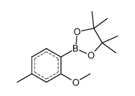 Product Name: 2-(2-methoxy-4-methylphenyl)-4,4,5,5-tetramethyl-1,3,2-dioxaborolane Order number: 209918 CAS: 1326662-69-4 Purity: >95% Appearance: n.a. MF: C14H21BO3 MW: 248.126 MP: n.a. oC Description: Boronic acids are widely used in organic chemistry, pharmaceuticals, materials science, and sensor technology. |