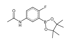 Product Name: 5-Acetamido-2-fluorophenylboronicAcidPinacolEster Order number: 209936 CAS: 1350558-27-8 Purity: ?95% Appearance: n.a. MF: C14H19BFNO3 MW: 279.115 MP: n.a. oC Description: Boronic acids are widely used in organic chemistry, pharmaceuticals, materials science, and sensor technology. |