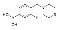 Product Name: [3-fluoro-4-(thiomorpholin-4-ylmethyl)phenyl]boronic acid Order number: 210012 CAS: 1334171-29-7 Purity: 95% Appearance: n.a. MF: C11H15BFNO2S MW: 255.117 MP: n.a. oC Description: Boronic acids are widely used in organic chemistry, pharmaceuticals, materials science, and sensor technology. |