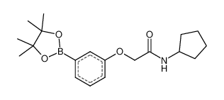 Product Name: N-Cyclopentyl-2-(3-(4,4,5,5-tetramethyl-1,3,2-dioxaborolan-2-yl)phenoxy)acetamide Order number: 210016 CAS: 2056919-34-5 Purity: 95% Appearance: n.a. MF: C19H28BNO4 MW: 345.241 MP: n.a. oC Description: Boronic acids are widely used in organic chemistry, pharmaceuticals, materials science, and sensor technology. |