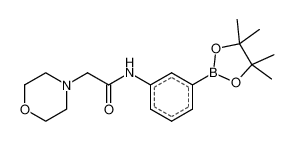 Product Name: 2-morpholino-N-(3-(4,4,5,5-tetramethyl-1,3,2-dioxaborolan-2-yl)phenyl)acetamide Order number: 210031 CAS: 1059171-55-9 Purity: 95% Appearance: n.a. MF: C18H27BN2O4 MW: 346.229 MP: n.a. oC Description: Boronic acids are widely used in organic chemistry, pharmaceuticals, materials science, and sensor technology. |
