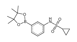 Product Name: Cyclopropanesulfonamide, N-[3-(4,4,5,5-tetramethyl-1,3,2-dioxaborolan-2-yl)phenyl]- Order number: 210032 CAS: 12151--7 Purity: 97% Appearance: n.a. MF: C15H22BNO4S MW: 323.216 MP: n.a. oC Description: Boronic acids are widely used in organic chemistry, pharmaceuticals, materials science, and sensor technology. |