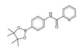 Product Name: N-(4-(4,4,5,5-tetramethyl-1,3,2-dioxaborolan-2-yl)phenyl)picolinamide Order number: 210035 CAS: 1542209-30-2 Purity: 95% Appearance: n.a. MF: C18H21BN2O3 MW: 324.182 MP: n.a. oC Description: Boronic acids are widely used in organic chemistry, pharmaceuticals, materials science, and sensor technology. |