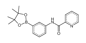 Product Name: N-(3-(4,4,5,5-tetramethyl-1,3,2-dioxaborolan-2-yl)phenyl)picolinamide Order number: 210036 CAS: 1610521-45-3 Purity: 95% Appearance: n.a. MF: C18H21BN2O3 MW: 324.182 MP: n.a. oC Description: Boronic acids are widely used in organic chemistry, pharmaceuticals, materials science, and sensor technology. |
