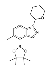 Product Name: 5-methyl-1-(oxan-2-yl)-4-(4,4,5,5-tetramethyl-1,3,2-dioxaborolan-2-yl)-1H-indazole Order number: 210066 CAS: 1698028-42-0 Purity: 97% Appearance: n.a. MF: C19H27BN2O3 MW: 342.24 MP: n.a. oC Description: Boronic acids are widely used in organic chemistry, pharmaceuticals, materials science, and sensor technology. |