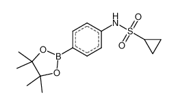 Product Name: Cyclopropanesulfonamide,N-[4-(4,4,5,5-tetramethyl-1,3,2-dioxaborolan-2-yl)phenyl]- Order number: 210073 CAS: 879487-14-6 Purity: 95% Appearance: n.a. MF: C15H22BNO4S MW: 323.216 MP: n.a. oC Description: Boronic acids are widely used in organic chemistry, pharmaceuticals, materials science, and sensor technology. |
