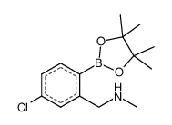 Product Name: 4-Chloro-2-(N-methylaminomethyl)phenylboronic acid, pinacol ester Order number: 210130 CAS: 2096333-97-8 Purity: 97% Appearance: n.a. MF: C14H21BClNO2 MW: 281.586 MP: n.a. oC Description: Boronic acids are widely used in organic chemistry, pharmaceuticals, materials science, and sensor technology. |