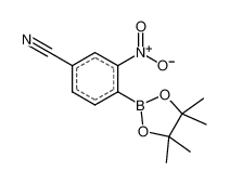 Product Name: 3-Nitro-4-(tetramethyl-1,3,2-dioxaborolan-2-yl)benzonitrile Order number: 210142 CAS: 775351-58-1 Purity: 95% Appearance: n.a. MF: C13H15BN2O4 MW: 274.08 MP: n.a. oC Description: Boronic acids are widely used in organic chemistry, pharmaceuticals, materials science, and sensor technology. |