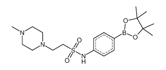 Product Name: 1-Piperazineethanesulfonamide, 4-methyl-N-[4-(4,4,5,5-tetramethyl-1,3,2-dioxaborolan-2-yl)phenyl]- Order number: 210165 CAS: 957198-23-1 Purity: 95% Appearance: n.a. MF: C19H32BN3O4S MW: 409.351 MP: n.a. oC Description: Boronic acids are widely used in organic chemistry, pharmaceuticals, materials science, and sensor technology. |