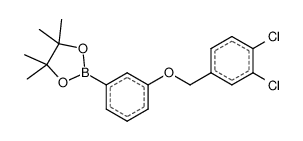 Product Name: 1,3,2-Dioxaborolane, 2-[3-[(3,4-dichlorophenyl)methoxy]phenyl]-4,4,5,5-tetramethyl- Order number: 210282 CAS: 2246779-56-4 Purity: 95% Appearance: n.a. MF: C19H21BCl2O3 MW: 379.085 MP: n.a. oC Description: Boronic acids are widely used in organic chemistry, pharmaceuticals, materials science, and sensor technology. |