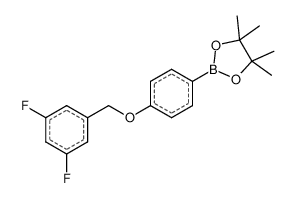 Product Name: 2-(4-((3,5-difluorobenzyl)oxy)phenyl)-4,4,5,5-tetramethyl-1,3,2-dioxaborolane Order number: 210288 CAS: 2246693-81-0 Purity: 95% Appearance: n.a. MF: C19H21BF2O3 MW: 346.176 MP: n.a. oC Description: Boronic acids are widely used in organic chemistry, pharmaceuticals, materials science, and sensor technology. |