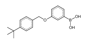 Product Name: Boronic acid, B-[3-[[4-(1,1-dimethylethyl)phenyl]methoxy]phenyl]- Order number: 210316 CAS: 13137-38-1 Purity: 95% Appearance: n.a. MF: C17H21BO3 MW: 284.158 MP: n.a. oC Description: Boronic acids are widely used in organic chemistry, pharmaceuticals, materials science, and sensor technology. |