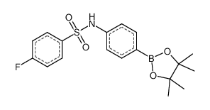 Product Name: 4-fluoro-N-(4-(4,4,5,5-tetramethyl-1,3,2-dioxaborolan-2-yl)phenyl)benzenesulfonamide Order number: 210317 CAS: 1469930-84-4 Purity: 95% Appearance: n.a. MF: C18H21BFNO4S MW: 377.238 MP: n.a. oC Description: Boronic acids are widely used in organic chemistry, pharmaceuticals, materials science, and sensor technology. |