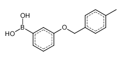 Product Name: Boronic acid, B-[3-[(4-methylphenyl)methoxy]phenyl]- Order number: 210318 CAS: 1311182-82-7 Purity: 95% Appearance: n.a. MF: C14H15BO3 MW: 242.078 MP: n.a. oC Description: Boronic acids are widely used in organic chemistry, pharmaceuticals, materials science, and sensor technology. |