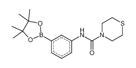 Product Name: N-(3-(4,4,5,5-tetramethyl-1,3,2-dioxaborolan-2-yl)phenyl)thiomorpholine-4-carboxamide Order number: 210340 CAS: 874301-68-5 Purity: 95% Appearance: n.a. MF: C17H25BN2O3S MW: 348.268 MP: n.a. oC Description: Boronic acids are widely used in organic chemistry, pharmaceuticals, materials science, and sensor technology. |