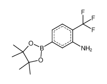 Product Name: 5-(Tetramethyl-1,3,2-dioxaborolan-2-yl)-2-(trifluoromethyl)aniline Order number: 210342 CAS: 2181780-09-4 Purity: 95% Appearance: n.a. MF: C13H17BF3NO2 MW: 287.086 MP: n.a. oC Description: Boronic acids are widely used in organic chemistry, pharmaceuticals, materials science, and sensor technology. |