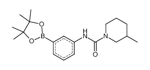Product Name: 3-methyl-N-(3-(4,4,5,5-tetramethyl-1,3,2-dioxaborolan-2-yl)phenyl)piperidine-1-carboxamide Order number: 210347 CAS: 2246447-62-9 Purity: 95% Appearance: n.a. MF: C19H29BN2O3 MW: 344.256 MP: n.a. oC Description: Boronic acids are widely used in organic chemistry, pharmaceuticals, materials science, and sensor technology. |