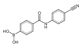 Product Name: B-[4-[[(4-cyanophenyl)amino]carbonyl]phenyl]boronic acid Order number: 210348 CAS: 874459-93-5 Purity: 95% Appearance: n.a. MF: C14H11BN2O3 MW: 266.06 MP: n.a. oC Description: Boronic acids are widely used in organic chemistry, pharmaceuticals, materials science, and sensor technology. |
