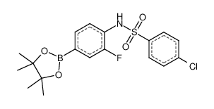 Product Name: 4-chloro-N-(2-fluoro-4-(4,4,5,5-tetramethyl-1,3,2-dioxaborolan-2-yl)phenyl)benzenesulfonamide Order number: 210385 CAS: 1314069-51-6 Purity: 95% Appearance: n.a. MF: C18H20BClFNO4S MW: 411.683 MP: n.a. oC Description: Boronic acids are widely used in organic chemistry, pharmaceuticals, materials science, and sensor technology. |