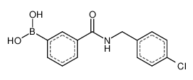 Product Name: Boronic acid, B-[3-[[[(4-chlorophenyl)methyl]amino]carbonyl]phenyl]- Order number: 210392 CAS: 874288-25-2 Purity: 95% Appearance: n.a. MF: C14H13BClNO3 MW: 289.522 MP: n.a. oC Description: Boronic acids are widely used in organic chemistry, pharmaceuticals, materials science, and sensor technology. |