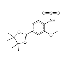 Product Name: Methanesulfonamide, N-[2-methoxy-4-(4,4,5,5-tetramethyl-1,3,2-dioxaborolan-2-yl)phenyl]- Order number: 210396 CAS: 1534377-39-3 Purity: 95% Appearance: n.a. MF: C14H22BNO5S MW: 327.204 MP: n.a. oC Description: Boronic acids are widely used in organic chemistry, pharmaceuticals, materials science, and sensor technology. |