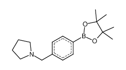 Product Name: 1-(4-(4,4,5,5-Tetramethyl-1,3,2-dioxaborolan-2-yl)benzyl)pyrrolidine Order number: 207179 CAS: 884507-39-5 Purity: 98% Appearance: n.a. MF: C17H26BNO2 MW: 287.205 MP: n.a. oC Description: Boronic acids are widely used in organic chemistry, pharmaceuticals, materials science, and sensor technology. |