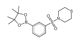 Product Name: Thiomorpholine,4-[[3-(4,4,5,5-tetramethyl-1,3,2-dioxaborolan-2-yl)phenyl]sulfonyl]- Order number: 207181 CAS: 864754-37-0 Purity: 97% Appearance: n.a. MF: C16H24BNO4S2 MW: 369.307 MP: n.a. oC Description: Boronic acids are widely used in organic chemistry, pharmaceuticals, materials science, and sensor technology. |