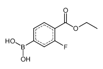 Product Name: (5-(Ethoxycarbonyl)-2-fluorophenyl)boronic acid Order number: 207194 CAS: 874219--0 Purity: 98% Appearance: n.a. MF: C9H10BFO4 MW: 211.983 MP: n.a. oC Description: Boronic acids are widely used in organic chemistry, pharmaceuticals, materials science, and sensor technology. |