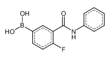 Product Name: 4-FLUORO-3-(PHENYLCARBAMOYL)BENZENEBORONIC ACID Order number: 207207 CAS: 874219-33-7 Purity: 95% Appearance: n.a. MF: C13H11BFNO3 MW: 259.041 MP: n.a. oC Description: Boronic acids are widely used in organic chemistry, pharmaceuticals, materials science, and sensor technology. |