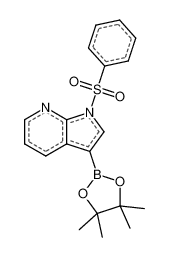 Product Name: 1-(Benzenesulfonyl)-1H-pyrrolo[2,3-b]pyridine-3-boronic acid pinacol ester Order number: 207214 CAS: 886547-94-0 Purity: 98% Appearance: n.a. MF: C19H21BN2O4S MW: 384.257 MP: n.a. oC Description: Boronic acids are widely used in organic chemistry, pharmaceuticals, materials science, and sensor technology. |