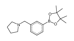Product Name: 1-(3-(4,4,5,5-Tetramethyl-1,3,2-dioxaborolan-2-yl)benzyl)pyrrolidine Order number: 207215 CAS: 884507-45-3 Purity: 95% Appearance: n.a. MF: C17H26BNO2 MW: 287.205 MP: n.a. oC Description: Boronic acids are widely used in organic chemistry, pharmaceuticals, materials science, and sensor technology. |