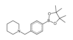 Product Name: 1-(4-(4,4,5,5-Tetramethyl-1,3,2-dioxaborolan-2-yl)benzyl)piperidine Order number: 207238 CAS: 859833-22-0 Purity: 98% Appearance: n.a. MF: C18H28BNO2 MW: 301.231 MP: n.a. oC Description: Boronic acids are widely used in organic chemistry, pharmaceuticals, materials science, and sensor technology. |
