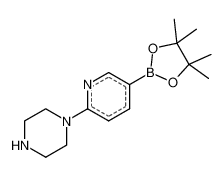 Product Name: 1-(5-(4,4,5,5-Tetramethyl-1,3,2-dioxaborolan-2-yl)pyridin-2-yl)piperazine Order number: 207292 CAS: 871125-86-9 Purity: 97% Appearance: n.a. MF: C15H24BN3O2 MW: 289.181 MP: n.a. oC Description: Boronic acids are widely used in organic chemistry, pharmaceuticals, materials science, and sensor technology. |