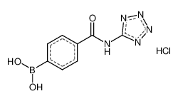 Product Name: (4-((1H-Tetrazol-5-yl)carbamoyl)phenyl)boronic acid hydrochloride Order number: 207331 CAS: 850568-31-9 Purity: 98% Appearance: n.a. MF: C8H9BClN5O3 MW: 269.453 MP: n.a. oC Description: Boronic acids are widely used in organic chemistry, pharmaceuticals, materials science, and sensor technology. |